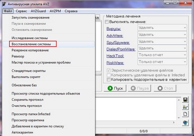 Обновляем утилиту AVZ. Файл –> обновление баз