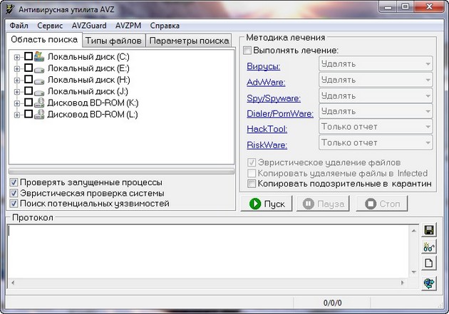 Значит так и набираем C:\Users\Ваше Имя пользователя\Desktop\avz4\avz.exe ![]() Открывается главное окно программы