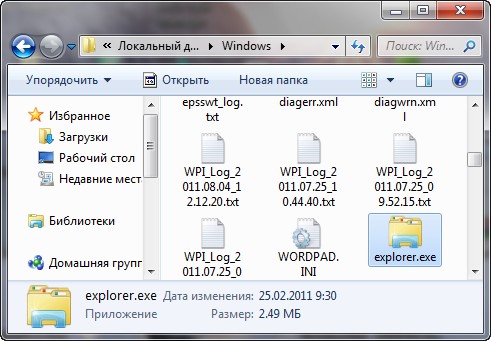 вводим в поле ввода explorer и ОК, должен появиться рабочий стол со всеми ярлыками и папками. ![]() Именно файл Explorer.exe отвечает за запуск графической оболочки Windows, представляющей из себя рабочий стол, меню пуск, панели инструментов и проводник. Если системный файл Explorer.exe не запустился вместе с операционной системой, значит и не запустится рабочий стол. Находится файл explorer.exe в папке C:\Windows. Вы можете меня спросить: - А почему файл Explorer.exe не запустился сам и запускать его нужно принудительно. Ответить можно так: - но нам повезло, да-да, именно повезло - вредоносная программа всего лишь изменила некоторые важные параметры реестра, отвечающие за запуск файла Explorer.exe (но не изменила сам файл). Вместо файла Explorer.exe и рабочего стола запустилось вредоносное приложение, процесс которого можно увидеть в Диспетчере задач. Как исправить повреждённый реестр и сделать так, чтобы Explorer.exe запускался сам? Конечно можно применить восстановление системы, это самый простой метод. Применяем восстановление системы.