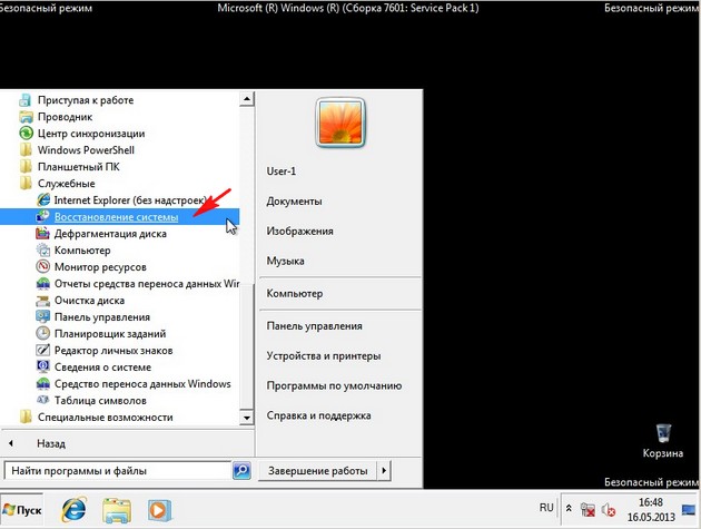 Безопасный режим Если в нормальном режиме диспетчер задач не открывается, загружаемся в безопасный режим, ![]() в большинстве случаев свой рабочий стол вы увидите. Применяем восстановление системы, откатываемся на день назад.
