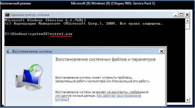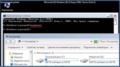 Безопасный режим с поддержкой командной строки В безопасном режиме с поддержкой командной строки набираем в командной строке explorer.exe, открывается рабочий стол, далее запускаем восстановление системы, редактируем реестр и так далее и тому подобное.