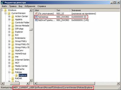 Всё это нужно удалить и привести реестр в нормальный вид. Исправляем оба значения в реестре. ![]() Смотрим ещё одну ветку реестра HKEY_CURRENT_USER\Software\Microsoft\ Windows\CurrentVersion\Policies\Explorer, если присутствует параметр: NoDesktop, то значение у него должно быть 0, но ни в коем случае не 1. И вообще параметр NoDesktop можно удалить. ![]() По названию вируса 2fg38m0.exe, произвожу поиск в реестре и нахожу ещё одно модифицированное значение. Ветка HKEY_CURRENT_USER\Software\Microsoft\Windows NT\CurrentVersion\Winlogon\ в параметре Shell прописан полный путь к вирусному файлу c:\users\Имя пользователя\appdata\local\temp\2fg38m0.exe, удаляем всё это, здесь вообще ничего не должно быть.